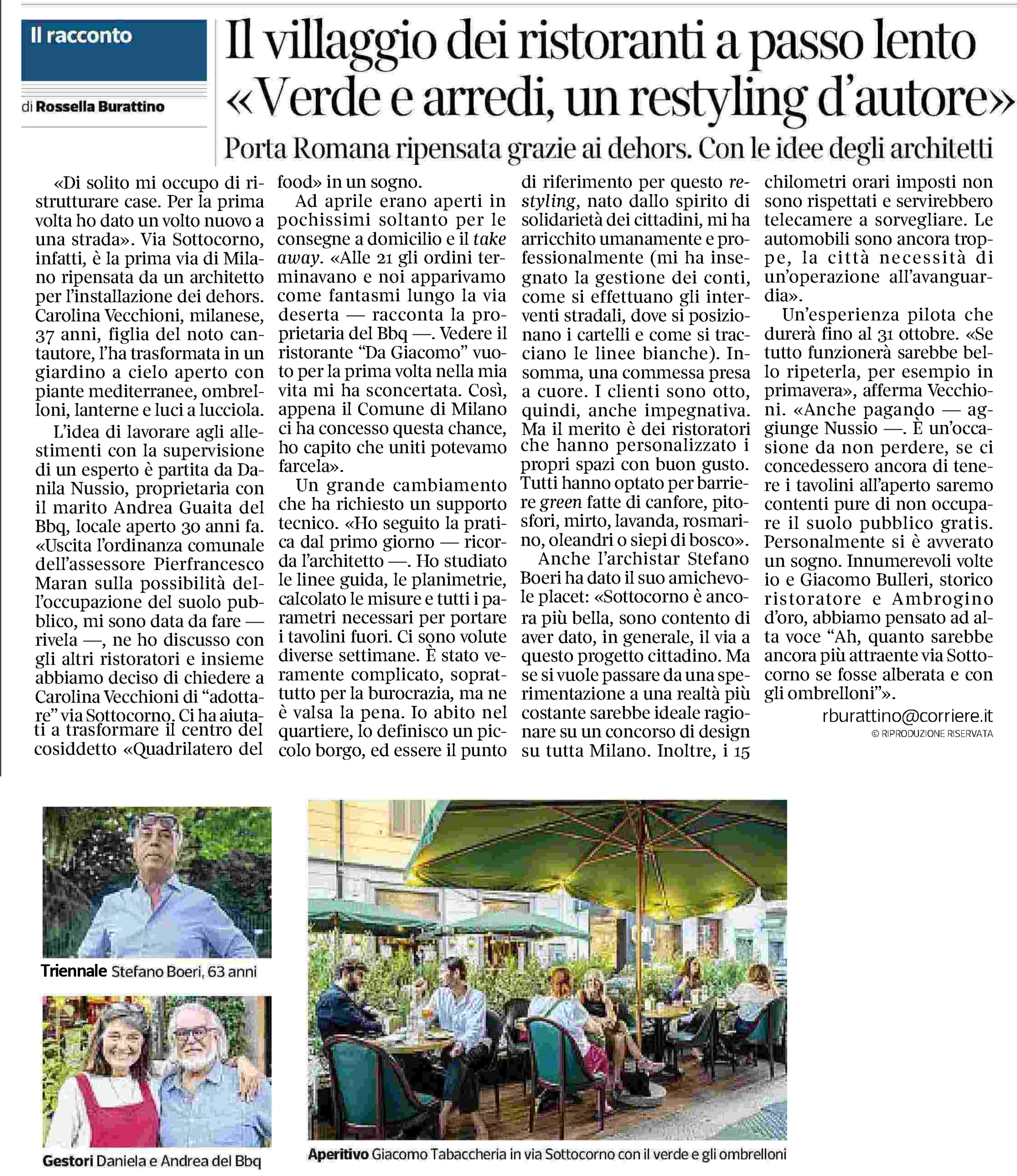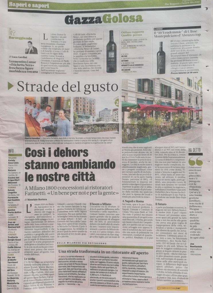 Riqualificazione via Sottocorno Trasformazione di strada urbana in zona residenziale per ampliamento spazi di esercizio di alcuni locali e ristoranti (Milano, 2020) Corriere della Sera – 24 luglio 2020 https://milano.corriere.it/notizie/cronaca/20_luglio_24/05-milano-documentolcorriere-web-milano-b544c634-cd10-11ea-83db-f973956fabb4.shtml?&appunica=true Gazzetta dello Sport – 28 agosto 2020 Condividi: Condividi su X (Si apre in una nuova finestra) X Condividi su Facebook (Si apre in una nuova finestra) Facebook Mi piace Caricamento...